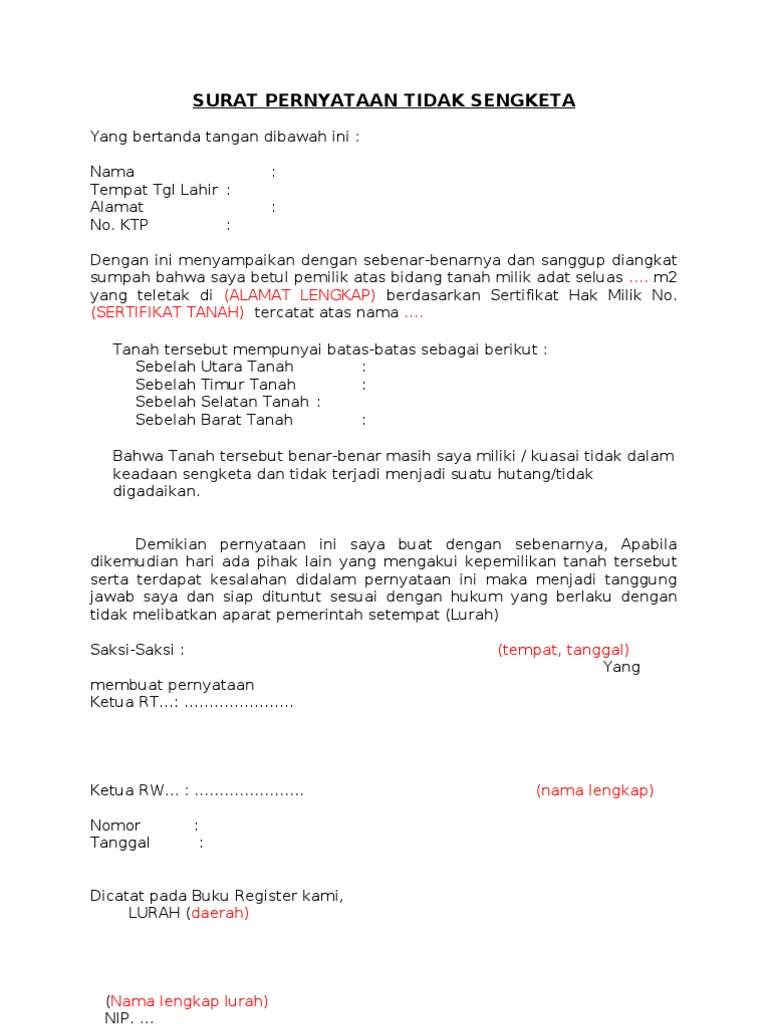 Contoh surat keterangan tidak silang sengketa. Pelapor, kepala desa tawaran, bocah brumbung mohammad areif, sh. Namun yang perlu anda perhatikan surat keterangan kepala desa ini tidaklah cukup untuk membuktikan kepemelikan atas tanah anda. Karena masih banyak juga yang belum tahu bagaimana membuat surat ini maka tidak ada salahnya jika kita pelajari lebih lanjut. Pdam surya sembada kota surabaya.